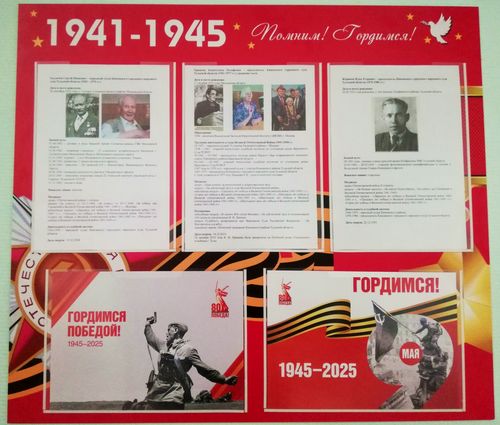 Май в России можно назвать месяцем памяти. Ведь День Победы в Великой Отечественной войне до сих пор остаётся одним из главных праздников в нашей стране. В каждой семье, в школах, вузах, организациях вспоминают тех, кто доблестно сражался с врагом на фронте, кто без устали ковал победу в тылу, кто смог пережить те страшные времена и не сломаться. В преддверии Дня Победы в Кимовском районном суде оформлен информационный стенд. На нём представлены фотографии героев - фронтовиков и тружеников тыла: председателя Кимовского городского народного суда (1976-1986 гг.) Жарикова И.Е., судьи Кимовского городского народного суда (1953-1976 гг.) Хохлачева С.И., председателя Кимовского городского суда (1961-1977 гг.) Хрящевой К.И. Это является напоминанием о вкладе наших предков в победу над фашизмом и о том, как важно сохранять память о них для будущих поколений. Мы помним! Мы чтим! Мы гордимся! ![]() Ответственный за взаимодействие со СМИ Кимовского районного суда Тульской области Ю.В.Кузнецова ( 8 (487 35) 5-93-91 E-mail: press@kimovsk.cdtula.ru http://kimovsky.tula.sudrf.ru/ (Раздел «Пресс – служба) https://t.me/s/sudpress71, https://vk.com/sudpress71, https://vk.com/kimovsksud |