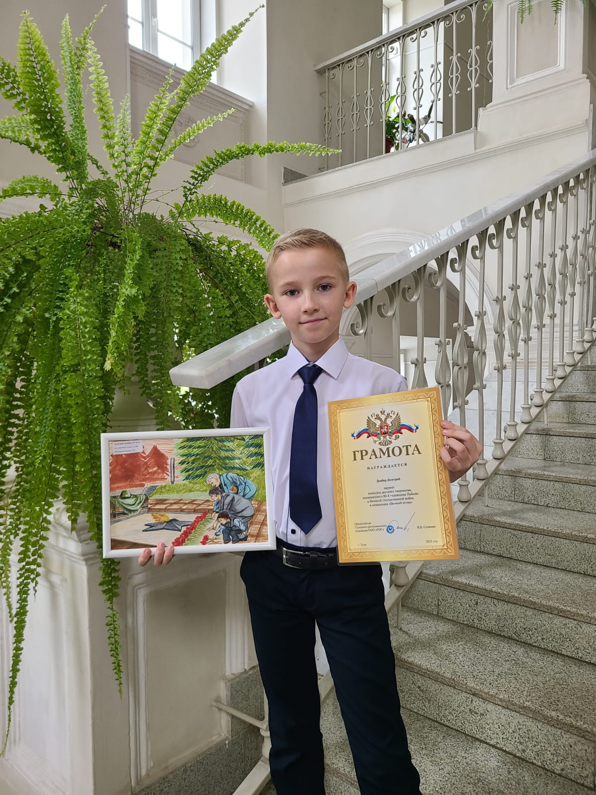 16 мая 2025 года в торжественной обстановке в Тульском областном суде состоялось награждение всех участников конкурса детского творчества среди детей федеральных и мировых судей Тульской области. Участие в творческом конкурсе принял сын мирового судьи судебного участка №81 Кимовского судебного района Тульской области Довбер Т.М. – Довбер Дмитрий. Участнику творческого состязания вручена Грамота лауреата конкурса детского творчества, посвященного 80-й годовщине Победы в Великой Отечественной войне, в номинации «Вечный огонь».